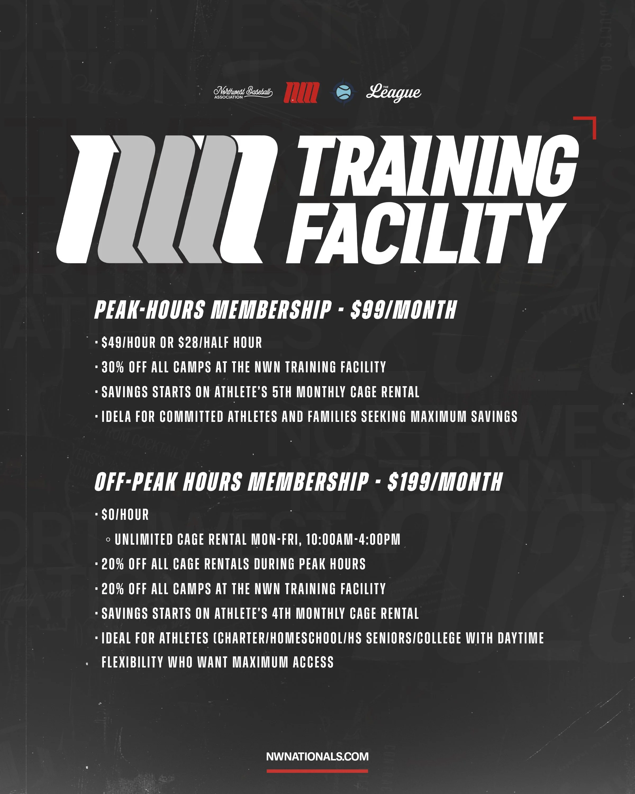 The Northwest Nationals Training Facility is built for serious and aspiring athlete development. We want the community to have access to a great facility, but our memberships provide priority access, exclusive savings, and a structured training environment. To ensure quality training and consistent availability, enrollment is limited.